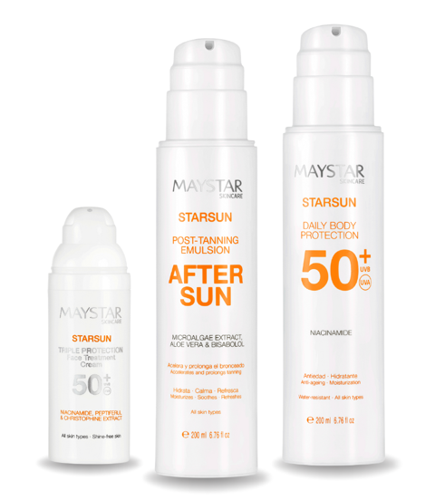 Maystar StarSun Luksuspakke – Komplet solpleje til ansigt og kropMaystar StarSun Luksuspakke giver komplet og effektiv solbeskyttelse¸ Fugt og pleje til både ansigt og krop¸ Produkterne beskytter huden mod skadelige UVA- og UVB-stråler¸ Samtidig med at